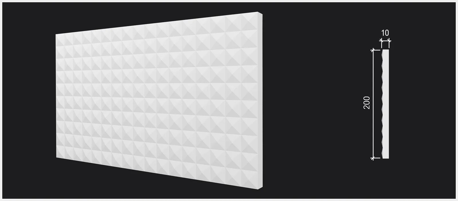 Панель DD932 — это технологический прорыв и визуальное удовольствие. Уникальный рельеф из регулярных пирамидальных модулей формирует строгий геометрический узор, который преображает пространство, наполняя его ритмом и динамикой.